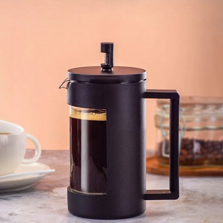 Френч-пресс Attribute Keniya, 800 мл помогает заварить ароматный кофе, подготовиться к чайной церемонии или угостить гостей вкусным латте, моккачино, крепким эспрессо или американо. Модель из нержавеющей стали отличается повышенной устойчивостью к внешним негативным факторам: коррозии, лаги, ультрафиолету, высоким температурам. На корпусе не образуются потертости и царапины на протяжение всего срока эксплуатации. Безопасная при контакте с ж��дкостями сталь не вступает в реакцию с заваркой. Внутри конструкции установлена стеклянная колба, которая отлично держит тепло. Она позволяет чайным листьям полностью раскрыться в процессе заваривания. Крышка остается едва теплой, поэтому во время чаепития нет риска получить ожог. Френч-пресс имеет эргономичную ручку с удобным хватом, поэтому можно не беспокоиться, что прибор выскользнет из рук. Все детали изделия плотно подогнаны друг к другу. В самой конструкции не наблюдаются зазоры и люфты. Ее дизайн разработан с учетом современных трендов, поэтому органично вписывается в любой интерьер: от классического до хай-тек, лофта, техно или модерна.