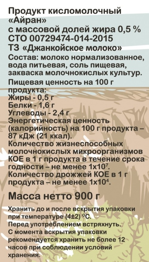Освежающий айран "Джанкойское молоко" – это легкий и полезный напиток с жирностью всего 0.5%. Идеально подходит для утоления жажды в жаркий день или в качестве дополнения к обеду. Удобная упаковка 900г.