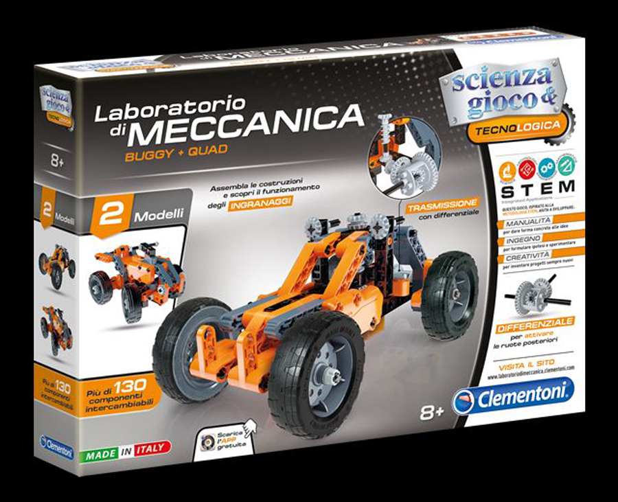 Научный комплект, который позволяет открыть все секреты четырехколесных внедорожников. Благодаря двум динамическим моделям багги и квадроциклу, дети могут узнать, как работают механизмы передачи. Содержит более 130 взаимозаменяемых компонентов (диски, шины, панели, стержни и штифты и др.). В дополнение к инструкции по сборке, лист с множеством интересных научных фактов о внедорожных транспортных средствах и механике двигателей внутреннего сгорания. Возрастное ограничение 8+