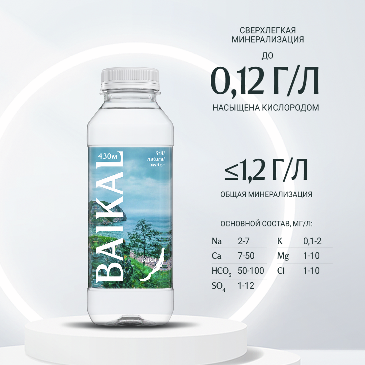 BAIKAL430 – реликтовая вода из озера Байкал с глубины 430 метров, сохранившаяся в первозданном виде. Она воплощает силу, неподвластную времени, и непоколебимое спокойствие великого озера. Растворенный в Байкале кислород придает воде свежесть вкуса, а сверхлегкая минерализация восполняет водно-солевой баланс. На сегодняшний день система забора воды BAIKALSEA Company — единственная на Байкале, выполненная с соблюдением всех стандартов и соответствующая всем современным требованиям, обеспечивающая неизменность уникального качества глубинной байкальской воды. BAIKAL430 представлена в различных форматах упаковки: от стильных бутылок, которые удобно брать с собой, до больших форматов, подходящих для домашнего использования и офиса.