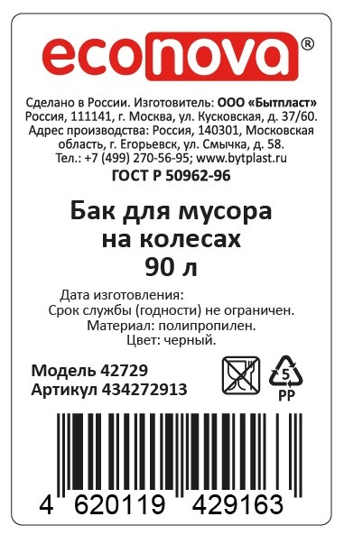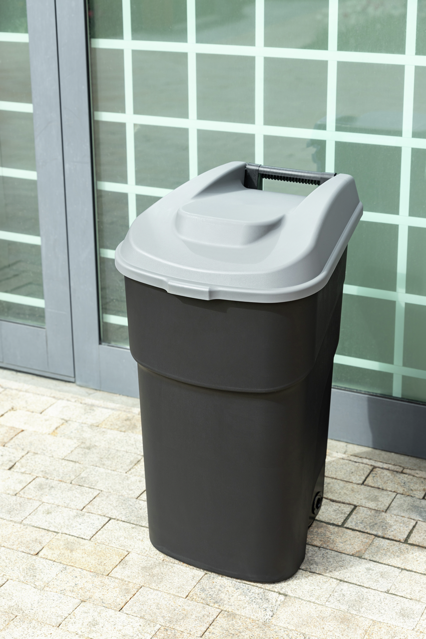 Прочный пластиковый контейнер для мусора на колесах 90л от Econova может использоваться как в помещении, так и на улице. Удобные колеса и ручка для передвижения делают его легким в управлении и практичным в использовании. Колеса имеют прорезиненную поверхность, что снижает уровень шума при передвижения контейнера для мусора. Колеса имеют прорезиненную поверхность, что снижает уровень шума при передвижения контейнера для мусора. Контейнер для мусора удобен в уходе, не впитывает запахи, изготовлен из пластмассы повышенной прочности.