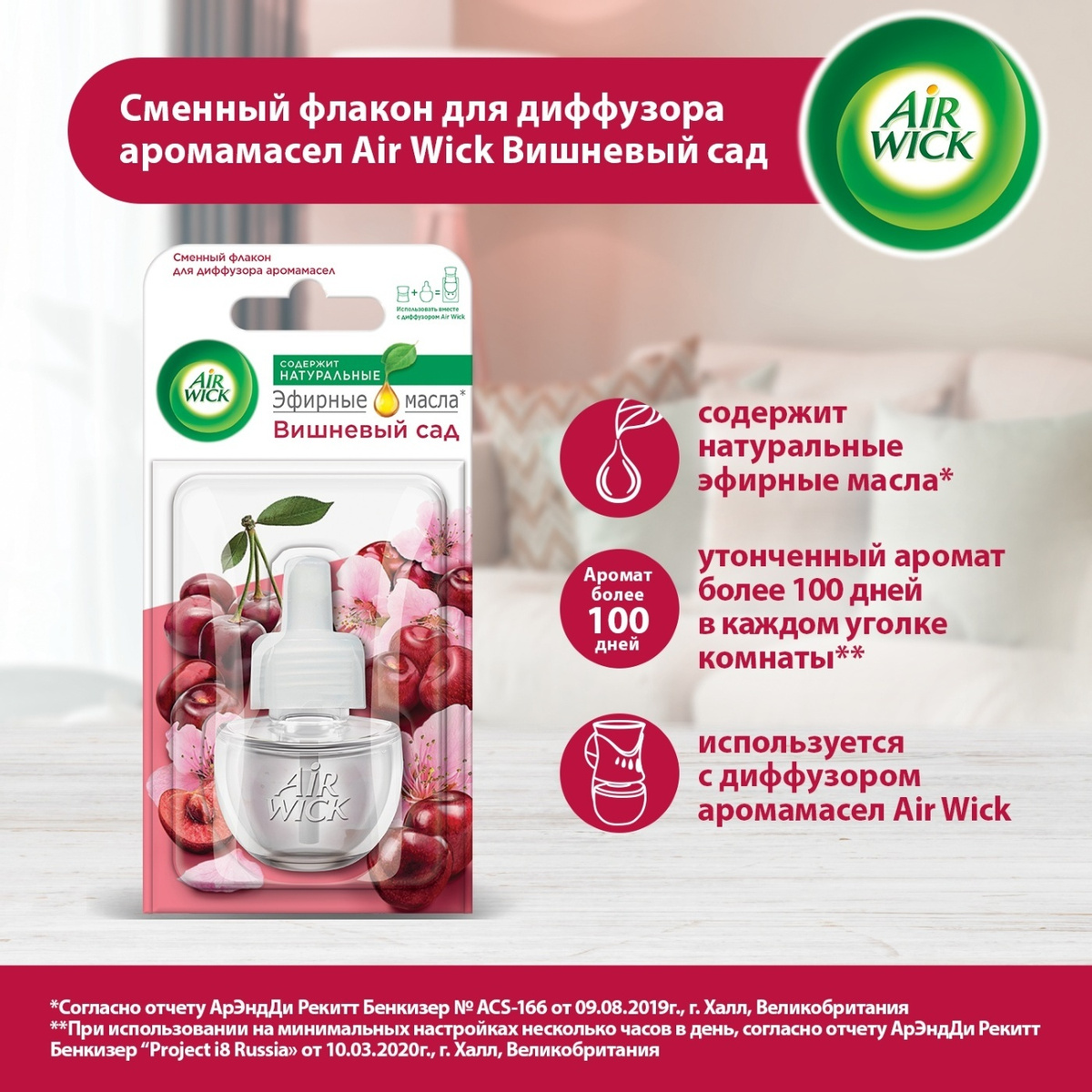 Флакон сменный для диффузора аромамасел AirWick Вишневый сад, 19мл
