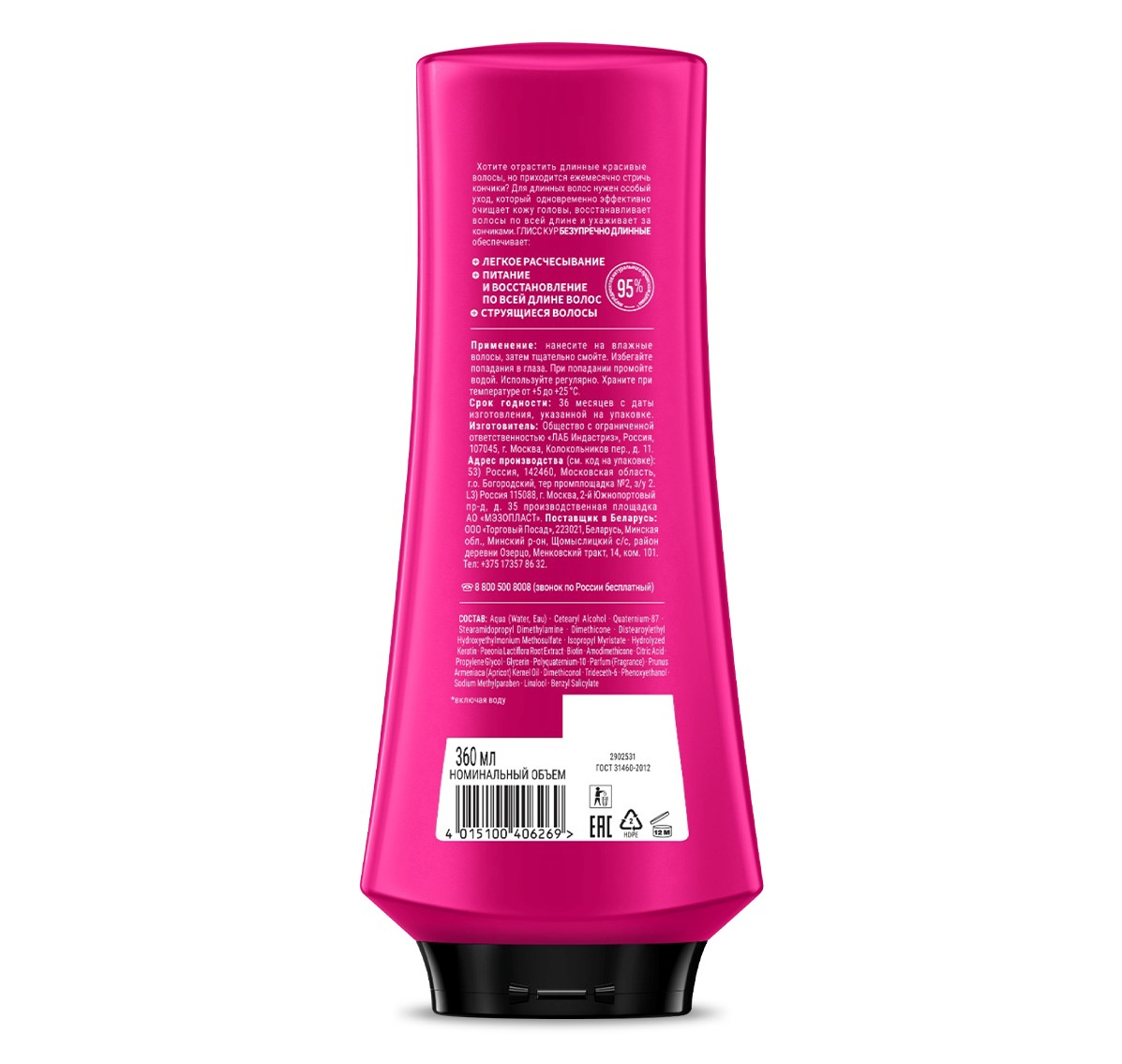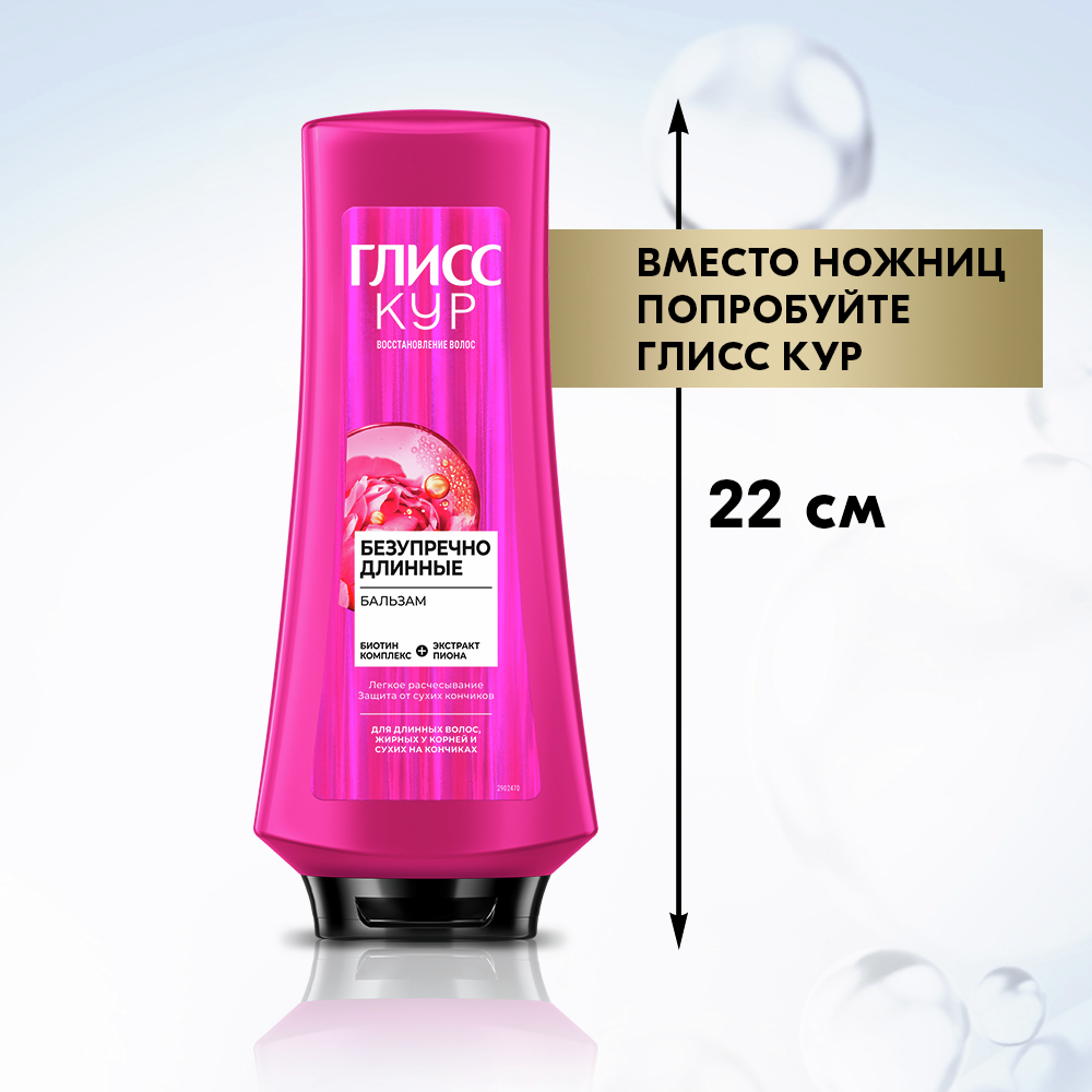 Хотите отрастить длинные красивые волосы, но приходится ежемесячно стричь кончики? Для длинных волос нужен особый уход, который одновременно эффективно очищает кожу головы, восстанавливает волосы по всей длине и ухаживает за кончиками. Глисс Кур женский бальзам для волос Безупречно длинные обеспечивает: лёгкое расчесывание и уход за волосами; питание и восстановление по всей длине волос; струящиеся волосы. Продукт содержит 95% ингредиентов натурального происхождения (включая воду).
