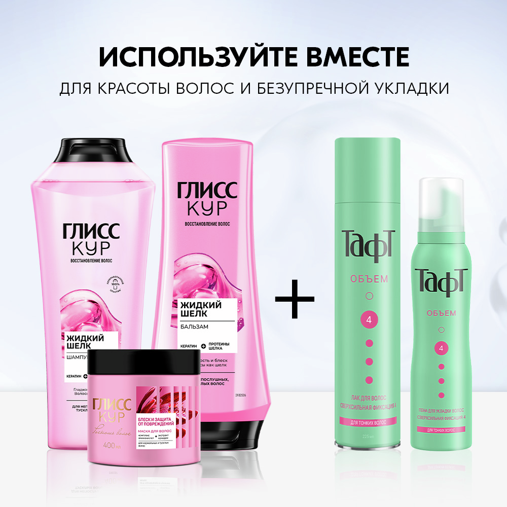 Из-за повреждений волосы становятся непослушными и теряют блеск. Чтобы вернуть гладкость и шелковистость нужен особый уход за волосами. Глисс Кур женский бальзам для волос Жидкий шелк обеспечивает: лёгкое расчесывание; мягкость волос и блеск; волосы как шёлк. Продукт содержит 95% ингредиентов натурального происхождения (включая воду).