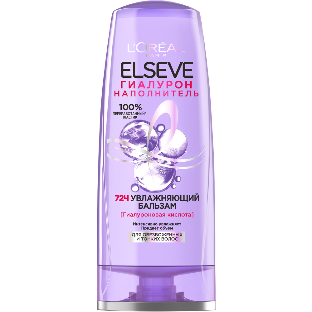 Наполнитель мгновенно преображает обезвоженные волосы, наполняя влагой, делает их блестящими, объемными и упругими без утяжеления. Наш увлажняющий бальзам Elseve Гиалурон Наполнитель с гиалуроновой кислотой заметно облегчает расчесывание, интенсивно увлажняет на 72 часа и при совместном применении с шампунем придает объем. Действие гиалуроновой кислоты: Молекула гиалуроновой кислоты способна удержать воды в 1000 раз больше собственного веса. Как своеобразный водный резервуар, она наполняет волосы влагой, делая их плотными и упругими.