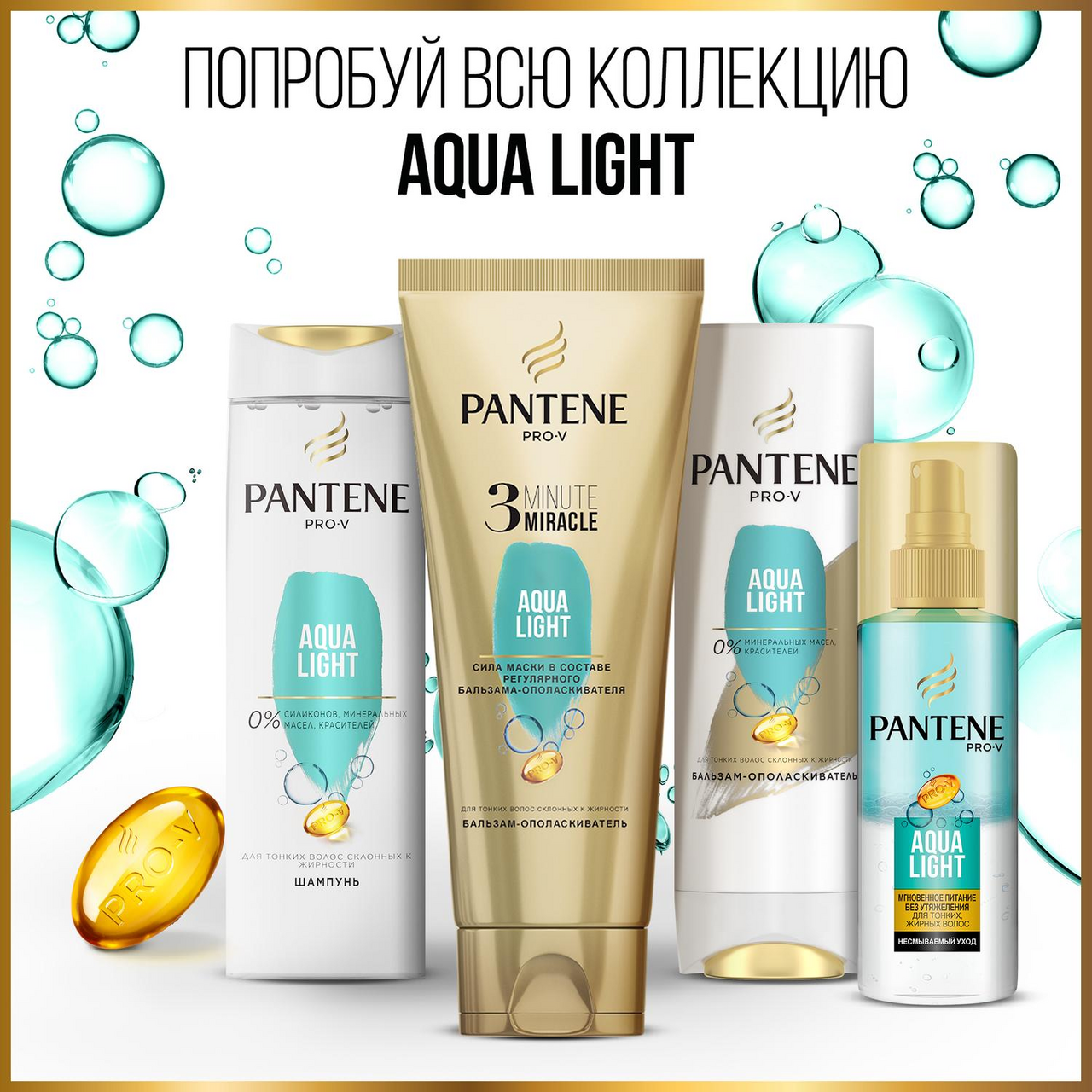 Бальзам-ополаскиватель Pantene Pro-V (Пантин Про-Ви) Aqua Light идеально подходит для тонких волос, склонных к жирности. Благодаря уникальному комплексу Pro-V и легкому составу без красителей и минеральных масел он увлажняет волосы без утяжеления, сохраняя их свежесть, легкость и подвижность. Подходит для ежедневного применения и для окрашенных волос. Для достижения максимального эффекта используйте в сочетании с шампунем и спреем для волос из коллекции Aqua Light. Легендарный бренд Pantene Pro-V заботится о здоровье и красоте волос женщин по всему миру уже более 75 лет. Сегодня Pantene — это богатый научный опыт ведущих экспертов и самые эффективные ингредиенты и питательные вещества, протестированные и одобренные Швейцарским Институтом Витаминов.