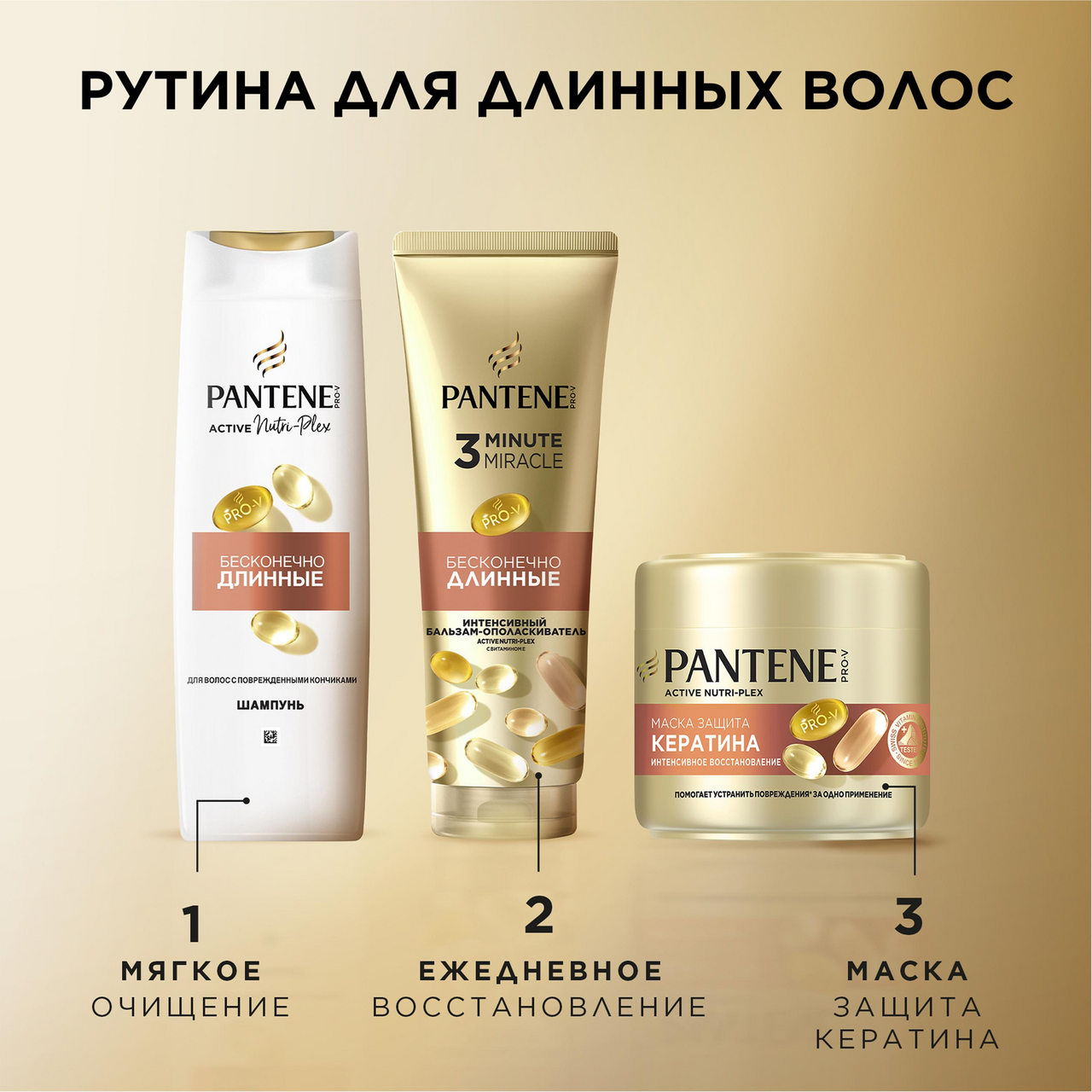 Откройте для себя бальзам-ополаскиватель Pantene Бесконечно Длинные 3 Minute Miracle с формулой Pro-V и технологией Active Nutri-Plex. Это средство глубокого действия, неотъемлемая часть ритуала по уходу за волосами, специально разработано, чтобы обеспечить интенсивное питание и помочь восстановить длинные волосы с ослабленными кончиками. Уникальная питательная смесь с провитамином B5, витамином Е, укрепляющими липидами и защитными антиоксидантами предлагает комплексный подход к здоровью волос. Бальзам-ополаскиватель глубокого действия с компонентами для защиты связи в структуре волос демонстрирует приверженность бренда созданию превосходных решений по уходу за волосами. Средство мгновенно тает на волосах, пропитывая каждую прядь питательными веществами, которые помогают восстановить видимые повреждения после всего лишь одного использования. Кондиционирующая сыворотка для волос с тающей текстурой проникает глубоко в структуру волос и дарит им в 3 раза больше силы изнутри (для защиты от повреждений при укладке). Формула интенсивного ухода помогает устранить видимые повреждения за 1 применение, не утяжеляя волосы (разглаживает поверхностные повреждения). Продукт протестирован специалистами Швейцарского института витаминов.