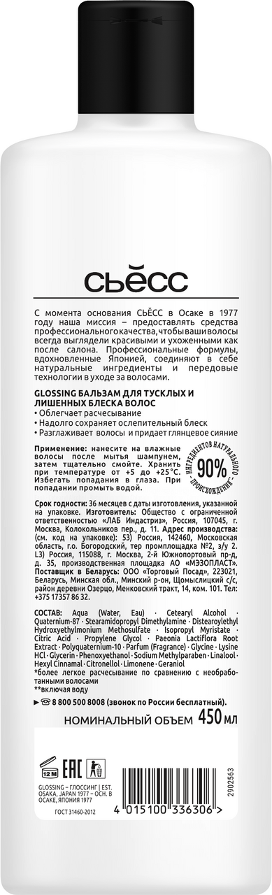 Бальзам для волос Сьёсс Glossing Многогранное сияние для тусклых и лишенных блеска волос, 450мл