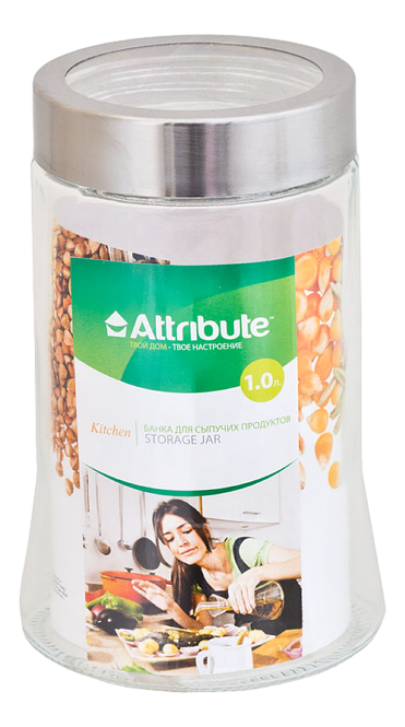 Банка стеклянная Attribute Kitchen с прозрачной крышкой, 1л