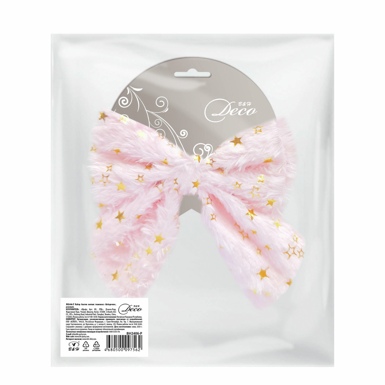Бант B&H звездочки тканевый розовый - одна из традиционных разновидностей украшений для новогодней ели. Банты придают елке большую пышность, помогают заполнить промежутки между игрушками и дополняют другой декор. Банты также широко применяются в качестве оформления для интерьера, ведь закрепить их можно практически на любой поверхности.