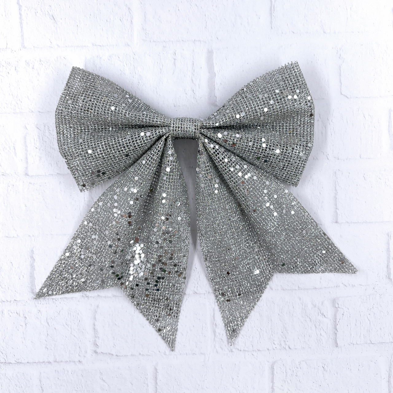 Бант с пайетками ChristmasDeLux серебро, 20 x 24см
