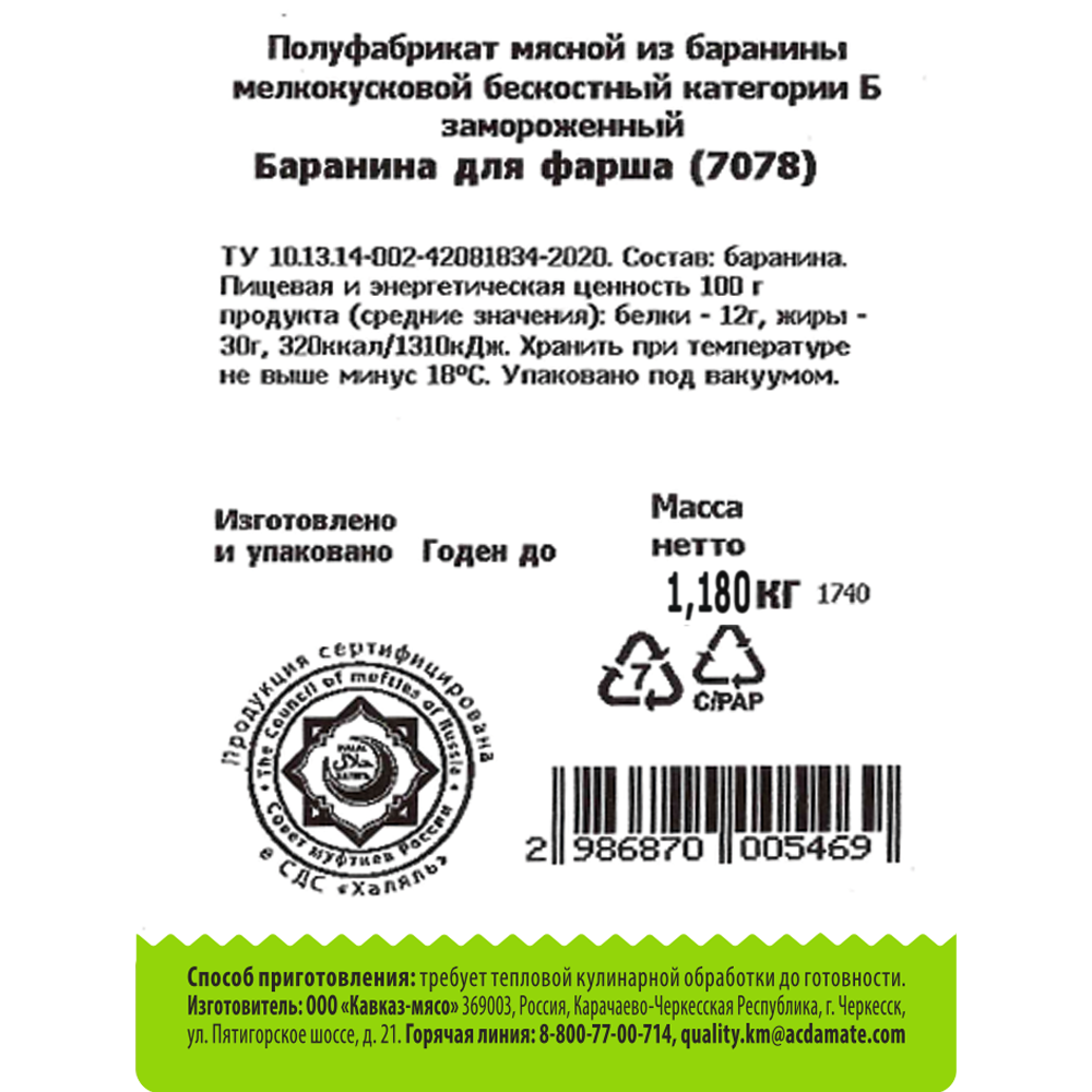 Баранина Bazarco Халяль для фарша замороженная, ~1.12кг