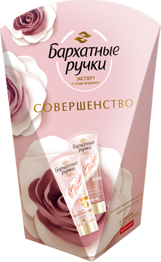 Эксперт в уходе за руками Бархатные ручки представляет ПРОГРАММУ УХОДА ЗА РУКАМИ СОВЕРШЕНСТВО, в состав которой входят питательный крем и крем-уход для рук.Кожа Ваших рук нуждается в бережном и тщательном уходе не меньше, чем кожа лица. Дерматологи рекомендуют использовать крем для рук ежедневно не менее 2-х раз в день[1]. КРЕМ ДЛЯ РУК ПИТАТЕЛЬНЫЙ только в наборе Специальная формула интенсивно питает и смягчает кожу рук. Микромасла проникают в кожу и в комплексе с протеинами шелка делают ее мягкой и нежной.В составе крема для рук ПИТАТЕЛЬНЫЙ:МАСЛО ШИ питает и восстанавливает клетки кожи. Масло ши оказывает смягчающее, увлажняющее и защитное действие. Подходит для ухода за кожей любого типа, особенно за сухой, раздраженной, поврежде��ной. Масло замедляет старение кожи.ГЛИЦЕРИН оказывает смягчающее действие на кожу, увлажняет ее. Небольшие по размеру молекулы глицерина способны преодолевать липидный барьер кожи и проникать в глубокие слои эпидермиса. Исследования показали, что глицерин способствует нормальному процессу жизнедеятельности клеток эпидермиса.КРЕМ-УХОД ДЛЯ РУК ШЕЛКОВАЯ НЕЖНОСТЬ только в наборе Увлажняет кожу и устраняет сухость, придавая рукам ухоженный вид. Дарит ощущение комфорта и шелковой нежности. В составе крема для рук ШЕЛКОВАЯ НЕЖНОСТЬ:АЛЛАНТОИН - бесцветное кристаллическое вещество натурального происхождения. Оказывает смягчающее и увлажняющее действие, стимулирует обновление клеток эпидермиса. МАСЛО АВОКАДО замедляет старение кожи и предотвращает появление морщин. Питает кожу, способствует восстановлению ее защитного, иммунного барьера. Стимулирует выработку организмом коллагена и ускоряет процесс регенерации клеток кожи.РАСКРОЙ СЕКРЕТ СОВЕРШЕНСТВА КОЖИ РУК! [1] По результатам собственного аппаратного исследования производителя, действие комплекса дневной крем+ночной крем по сравнению с дневным кремом для рук по параметру увлажнение, 25 женщин, РФ, 2016. Свойства подтверждены клиническими испытаниями, РФ, 2015.В состав подарочного набора входит: Бархатные ручки крем для рук Питательный 72 мл и крем-уход для рук Шёлковая нежность 80 мл.Узнайте больше о продукте на официальном сайте www.silkyhands.ru/