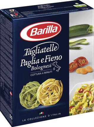 Макароны BARILLA палья э фьено позволят приготовить вкусное и красивое блюдо. Продукт изготовлен в Италии по традиционной рецептуре. В его основу легла мука твердых сортов пшеницы высшей категории и очищенная вода. Макароны не содержат консервантов и пищевых добавок. Зеленый цвет Палья э фьено удалось придать при помощи натурального природного красителя – шпината, который к тому же добавил изделиям необычный вкус и пользу. Продукт выполнен в форме гнезд, скрученных по особой технологии. Макароны итальянской фирмы готовятся равномерно, не развариваются и не разваливаются во время варки. Макароны BARILLA палья э фьено, 500г вы можете приобрести в торговом центре METRO. Состав: мука из твердых сортов пшеницы, шпинат сухой измельченный (0,9%), вода. Пищевая ценность в 100 г продукта: белки: 12,0 г, жиры: 1,5 г, углеводы: 72,2 г. Энергетическая ценность: 356 ккал.