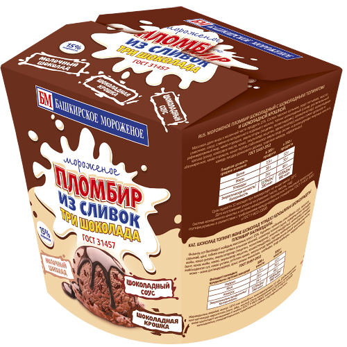 Мороженое пломбир Башкирское мороженое Три шоколада 15%, 350г