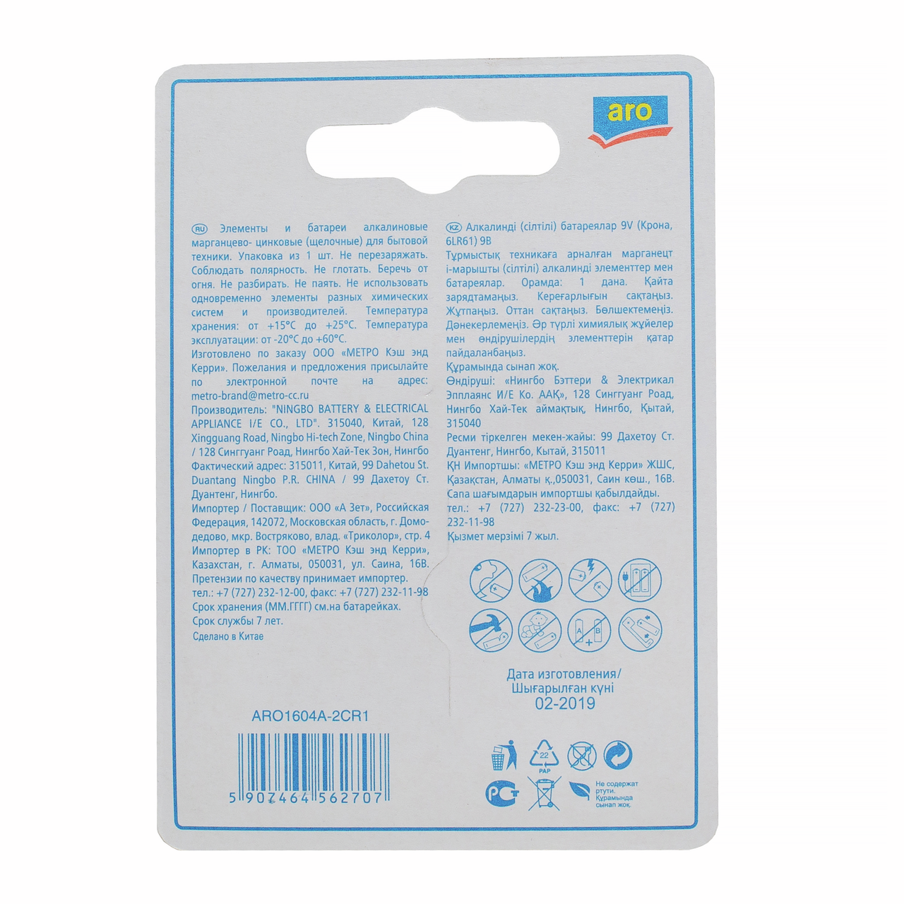 aro Батарейки Крона 9V