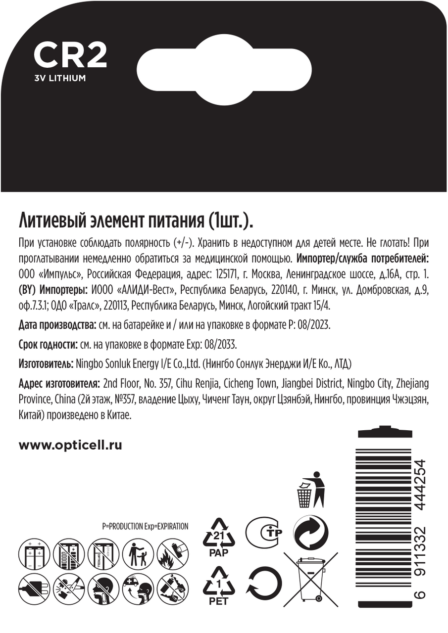 Батарейки Opticell CR2 предназначены для использования в игрушках, калькуляторах и измерительных устройствах. Предназначена для использования в автомобильных брелоках, кухонных весах, различных медицинских, спортивных и других портативных устройствах.