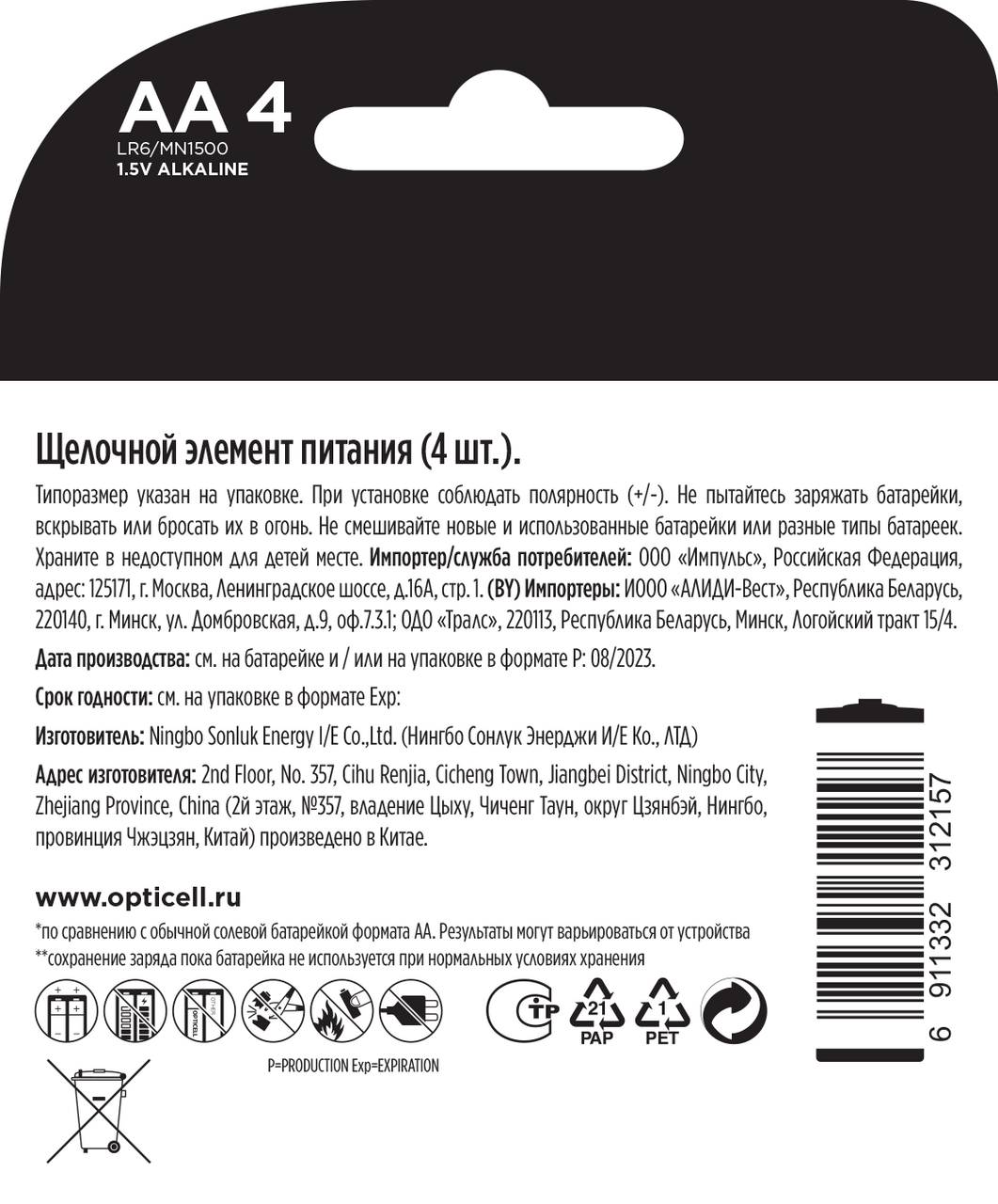 Батарейки базовой линейки Opticell размера AA - работают до 15 раз дольше (по сравнению с солевой батарейкой типа АА. Результаты могут варьироваться в зависимости от устройства и интенсивности использования). Батареи АА чаще используются в небольшой технике - пульты управления, музыкальные плееры, часы. Их активно используют в электронных детских игрушках.
