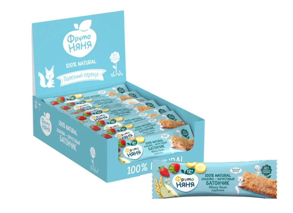 Новый злаково-фруктовый батончик ФрутоНяня — сытный и вкусный перекус, который сочетает в себе пользу фруктов и питательность злаков! Он приготовлен только из натуральных ингредиентов без добавления сахара- это идеальное решение для перекуса вне дома. С злаково-фруктовым батончиком ФрутоНяня можно смело отправляться на долгие прогулки! Для питания ребенка раннего возраста, особенно в течение его первого года жизни, предпочтительнее грудное вскармливание. Товар не является полноценным заменителем грудного женского молока. Возрастные и иные ограничения см. на упаковке. Необходима консультация специалиста