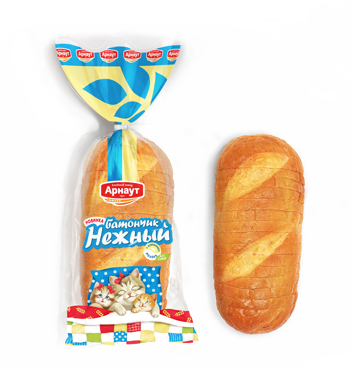 Супермягкий батончик нежный из муки высшего сорта с добавлением цельного молока, которое придает мякишу сливочный аромат и кремовый цвет. Изготовлен на густой опаре, не содержит ГМО. Ароматный хлеб отлично сочетается с супами, мясными и рыбными блюдами, а также сливочным маслом.