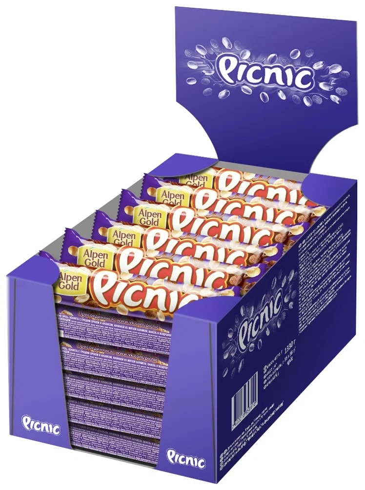 Батончик Picnic шоколадный с арахисом и изюмом, 38г x 35 шт