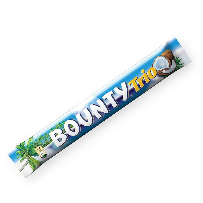 Батончик Bounty с мякотью кокоса, покрытый нежным молочным шоколадом. Благодаря нежному кокосу и молочному шоколаду Bounty подарит вам ощущение райского вкуса, где бы вы ни находились. Положите Bounty в сумку и взбодрите любое тоскливое утро манящим тропическим лакомством. Bounty включает в себя два отдельных кусочка - один сейчас, другой на потом (или чтобы поделиться с близким).