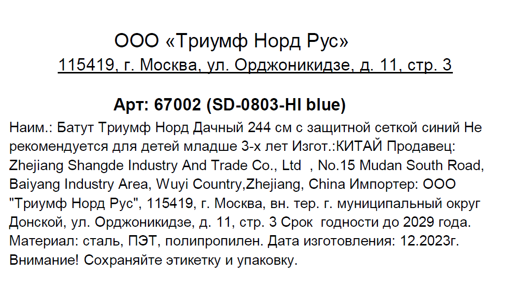 Прыжки на батуте Дачный от Triumph Nord - это отличный способ для поддержания спортивной формы и активного досуга на свежем воздухе. Лаконичная конструкция батута с рамой из оцинкованной стали позволяет батуту выдерживать нагрузки до 150кг и не деформироваться. Безопасность прыжков обеспечивает защитная сетка из высокопрочного нейлона, подушка безопасности толщиной 24мм и верхние стойки в мягких чехлах из поролона. В качестве материала прыжковой поверхности используется прочный перматрон последнего поколения. Батут Дачный представлен в 3 размерах: диаметром 244см, 305см, 366см.Максимальный вес, выдерживаемый батутом составляет 100кг, а полотно сделано из материала перматрон. Все вышеуказанные характеристики довольно важны, так как от них зависит то, какое количество человек поместится на прыжковом тренажере, и поместится ли он в квартиру или на дачный участок. Комфортность прыжков также обеспечат 48 пружин.