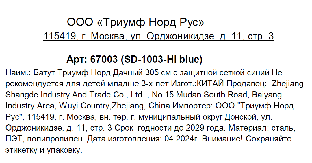 Прыжки на батуте Дачный от Triumph Nord - это отличный способ для поддержания спортивной формы и активного досуга на свежем воздухе. Лаконичная конструкция батута с рамой из оцинкованной стали позволяет батуту выдерживать нагрузки до 150кг и не деформироваться. Безопасность прыжков обеспечивает защитная сетка из высокопрочного нейлона, подушка безопасности толщиной 24мм и верхние стойки в мягких чехлах из поролона. В качестве материала прыжковой поверхности используется прочный перматрон последнего поколения. Батут Дачный представлен в 3 размерах: диаметром 244см, 305см, 366см.Максимальный вес, выдерживаемый батутом составляет 100кг, а полотно сделано из материала перматрон. Все вышеуказанные характеристики довольно важны, так как от них зависит то, какое количество человек поместится на прыжковом тренажере, и поместится ли он в квартиру или на дачный участок. Комфортность прыжков также обеспечат 54 пружин.