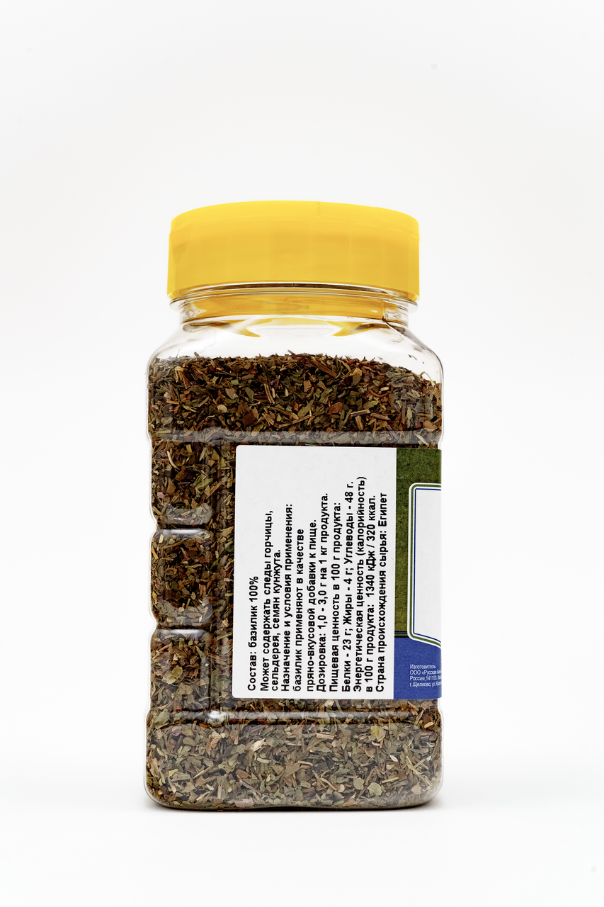 Базилик METRO CHEF – ароматная пряность, широко применяемая в кулинарии. Она получена путем высушивания и измельчения листьев и соцветий пряного растения, что позволяет сохранить их удивительный аромат и пользу для организма. Сушеный базилик богат дубильными веществами, эфирными маслами, фитонцидами, фолиевой кислотой, медью и марганцем. Его применяют как монокомпонентную приправу или дополняют другими пряностями (розмарином, петрушкой, тимьяном, чабрецом). Гурманы ценят базилик за насыщенный вкус, которому присущи жгучие, острые, камфарные, перечные ноты. В умеренных количествах пряность добавляют в блюда французской, средиземноморской, европейской кухни. Она улучшает вкус домашних паштетов, супов, маринованных кабачков и огурцов, тушеных овощей. Приобрести сушеный базилик METRO CHEF, 110 г, можно в торговом центре METRO.Производитель: Metro C&C.Страна: Россия.Бренд: METRO CHEF.Тип: пряность.Упаковка: пластиковая банка.Вес: 110 г.Состав: листья и соцветия базилика высушенные, измельченные.Пищевая ценность, 100 г: белки — 12 г, жиры — 6 г, углеводы – 35 г.Энергетическая ценность, 100 г: 215 ккал.Хранить при температуре от 0 до +20С в сухом месте.Срок хранения: 12 месяцев.