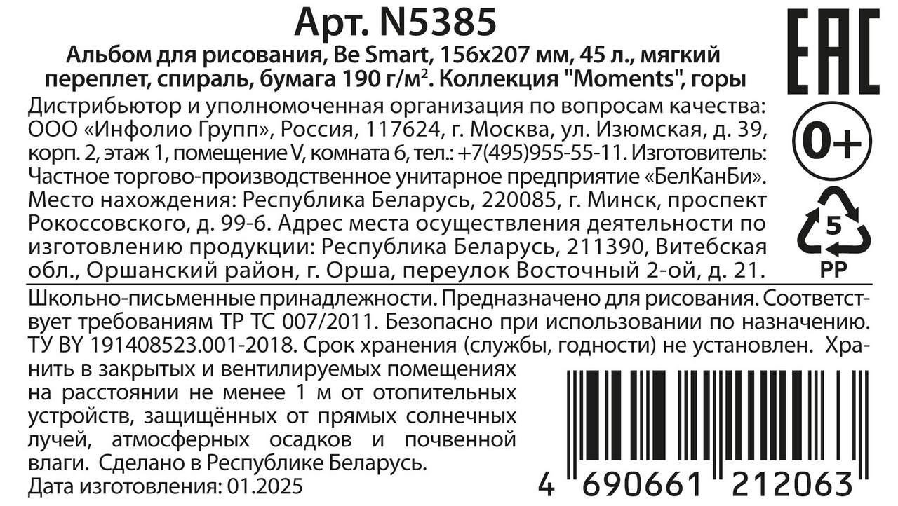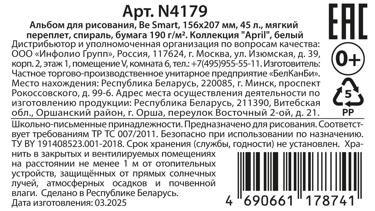 Альбом для рисования Be Smart 45 листов, 15х20 см – классический аксессуар для творчества. Подойдет как для школьных уроков рисования, так и для занятий в изостудии и творческих увлечений взрослых и детей. Обложка альбома изготовлена из прочного и плотного, но гибкого ламинированного картона, который сохраняет свои первоначальные эстетические и качественные характеристики на протяжении всего срока эксплуатации, плюс защищает листы от негативного влияния внешних факторов. Внутренний блок представлен 64 плотными листами с матовой, белоснежной, немного шершавой поверхностью.