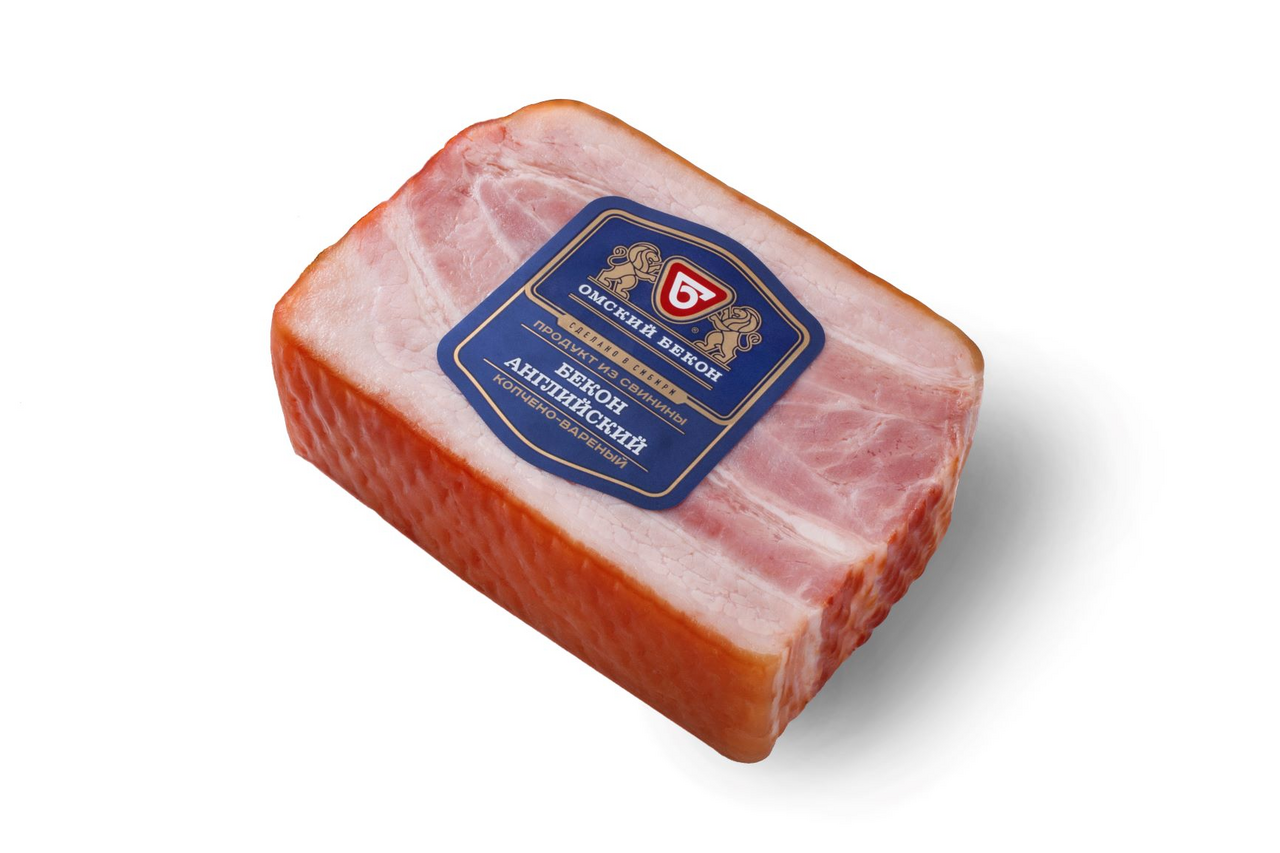 Бекон Омский бекон Английский варено-копченый, 300г – мясной продукт с ярким вкусом и глубоким насыщенным ароматом, имеющий аппетитную корочку. В основе лежит свинина, дополненная чесноком, пряностями и их экстрактами. Продукт содержит ряд витаминов и минералов, среди которых есть калий, магний, натрий, кальций, фосфор и некоторые другие не менее полезные и важные для организма. Из бекона получаются сытные и оригинальные бутерброды, закуски, мясные рулеты. Мелко нарезанный продукт может служить ингредиентом для приготовления вторых блюд.