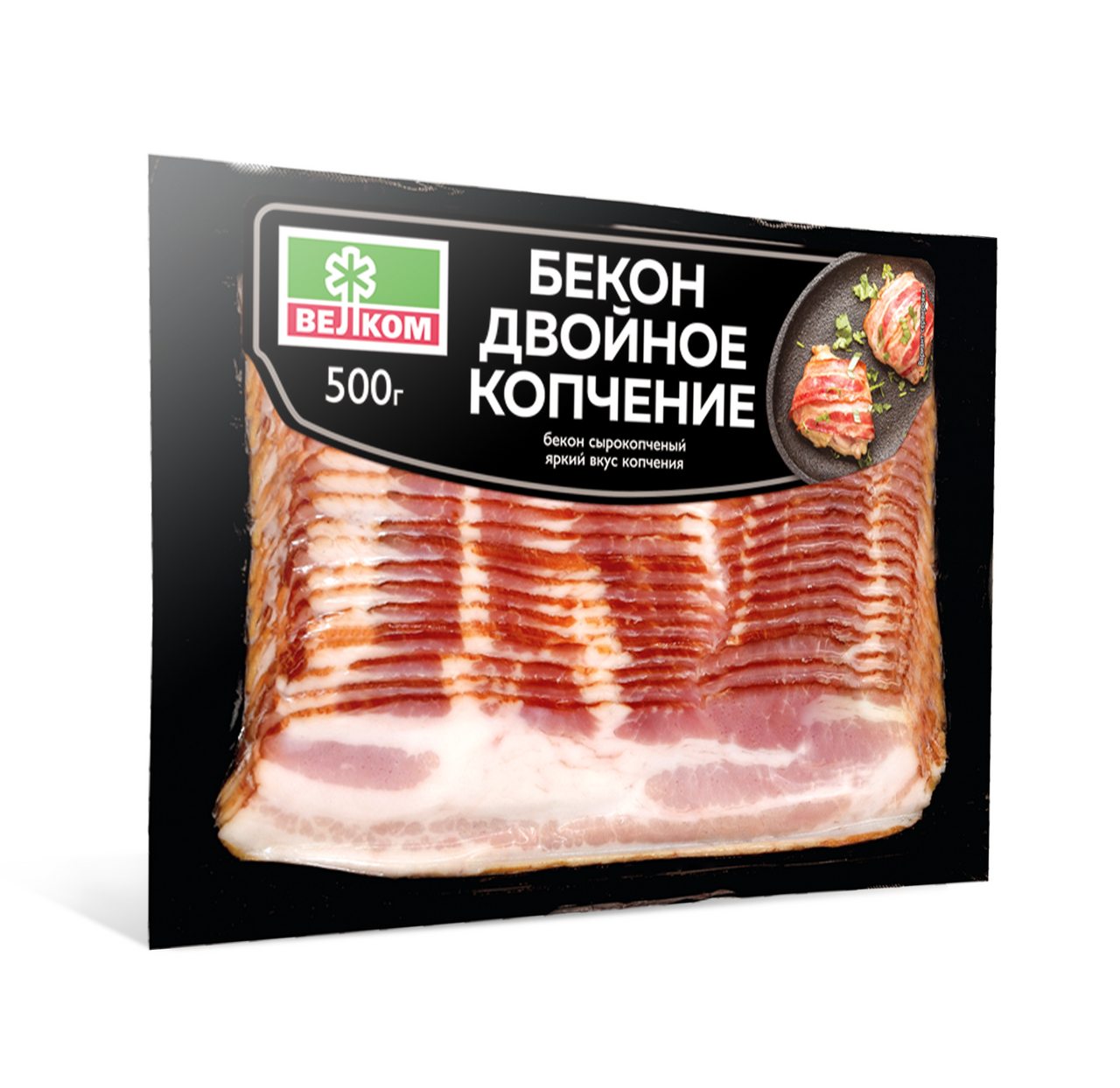 Бекон Велком Двойное копчение сырокопченый нарезка, 500г