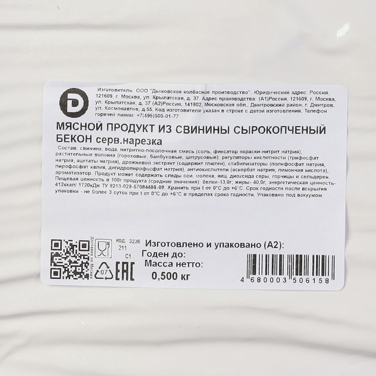 Бекон Дымов сырокопченый, 500г