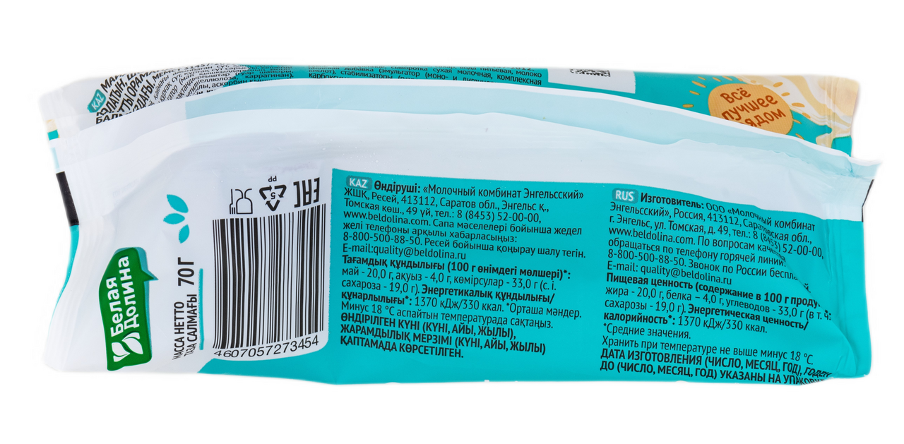 Мороженое Белая долина Пломбир на сливках рожок 15% ГОСТ, 70г – это аппетитный десерт, который придется по вкусу всем членам семьи. Он изготавливается из натуральных ингредиентов и отличается тонким ванильным ароматом, нежной консистенцией и насыщенным сливочным вкусом. Для его создания используется коровье молоко высокого качества. Оно богато белком, кальцием, витаминами и другими полезными веществами, поэтому обладает полезными свойствами. Продукт благоприятно воздействует на состояние костной ткани и работу пищеварительной системы, наполняет силами и энергией. Вафельный стаканчик изготавливается из пшеничной муки и характеризуется воздушной и хрустящей текстурой. Сладость мороженого активизирует в организме выработку гормона радости – серотонина. Он улучшает настроение и повышает активность. Лакомство прекрасно освежает в жаркий летний день. Также оно может стать хорошим дополнением к праздничному столу. Десерт отлично сочетается с горячим шоколадом или кофе.