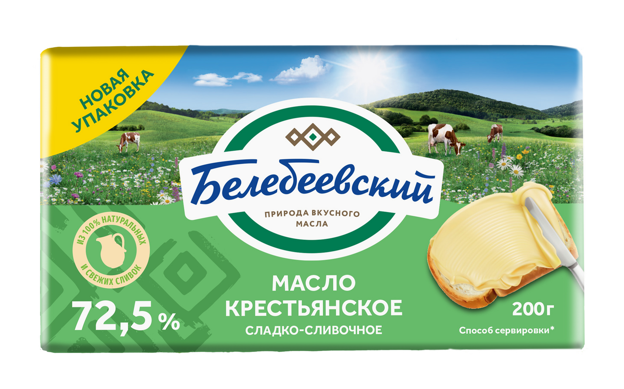 Масло Белебеевское сливочное крестьянское 72,5%, 200г