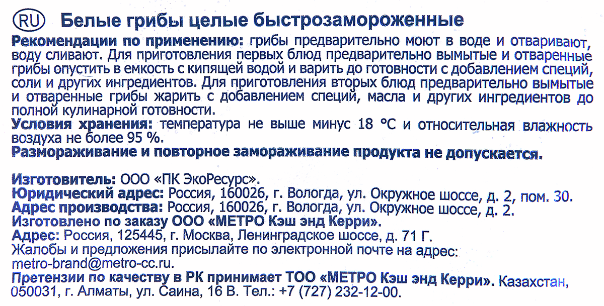 Грибы белые шляпки METRO Chef замороженные, 1 кг - аппетитная закуска к повседневному меню или праздничному застолью. Продукт поставляется в удобной для использования и переноски упаковке, а температура его хранения не должна превышать -18С при влажности воздуха 95%.