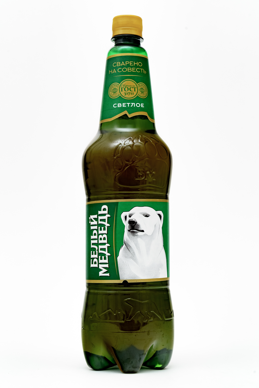 Пиво Белый Медведь светлое 5% пэт, 1,32л