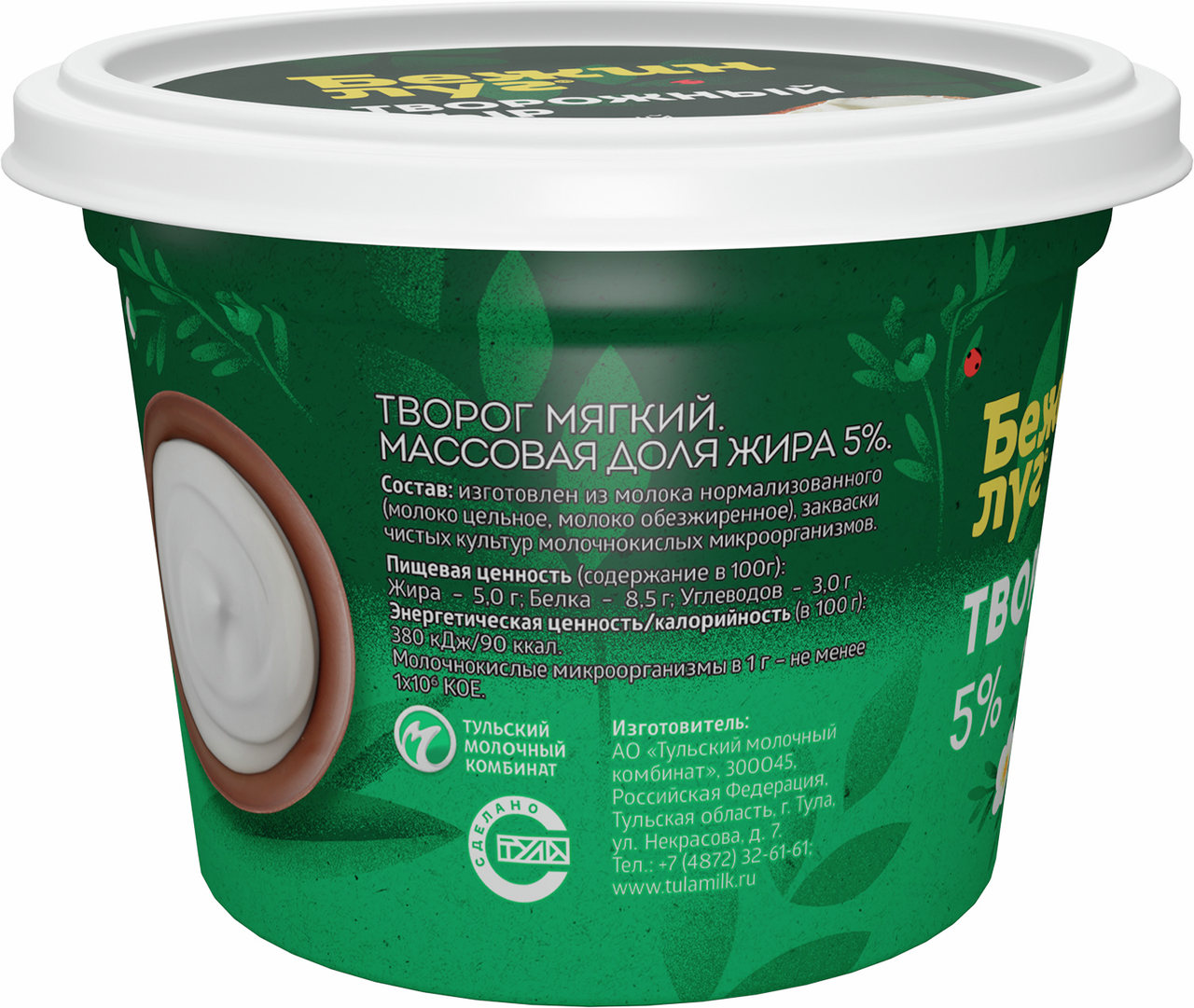 Творог Бежин Луг— это диетический кисломолочный продукт, получаемый в результате сквашивания молока. Помимо большого количества кальция и важных витаминов, творог чрезвычайно богат полноценным белком, содержащим все незаменимые для организма аминокислоты. Усвояемость белка из творога (казеина) гораздо выше, чем у мяса, а длительность его усвоения - дольше, таким образом, после приема творога вы не будете чувствовать себя голодным еще очень долгое время. Значение белка в организме сложно переоценить, ведь из него строятся большая часть тканей человеческого организма и гормоны.