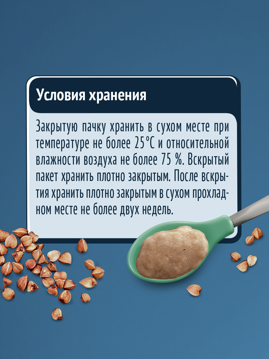 Мука гречневая, кальция карбонат, соль, витамин С (L-аскорбиновая кислота), железа(II) фумарат, бифидобактерии не менее 1х106 КОЕ/г. Продукт может содержать глютен, молоко и сою. Продукт упакован в модифицированной атмосфере с азотом.