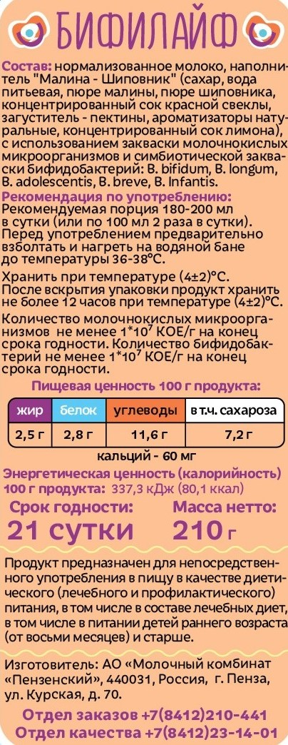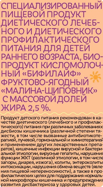 Бифилайф МаМалыш малина и шиповник 8+ месяцев 2.5%, 210г