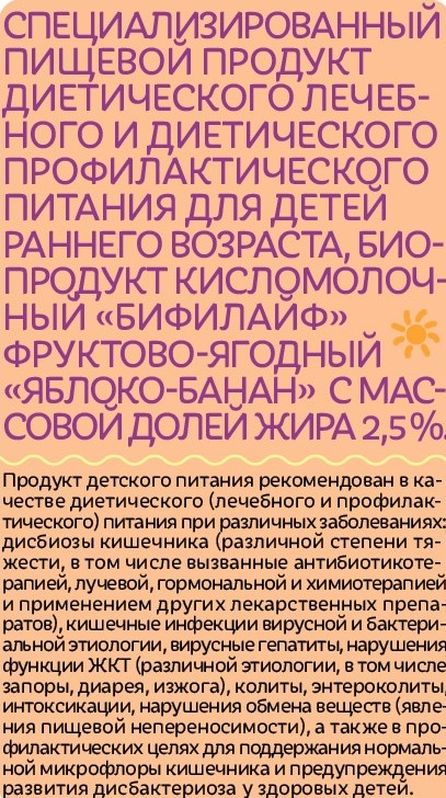 Бифилайф МаМалыш яблоко и банан 8+ месяцев 2.5%, 210г