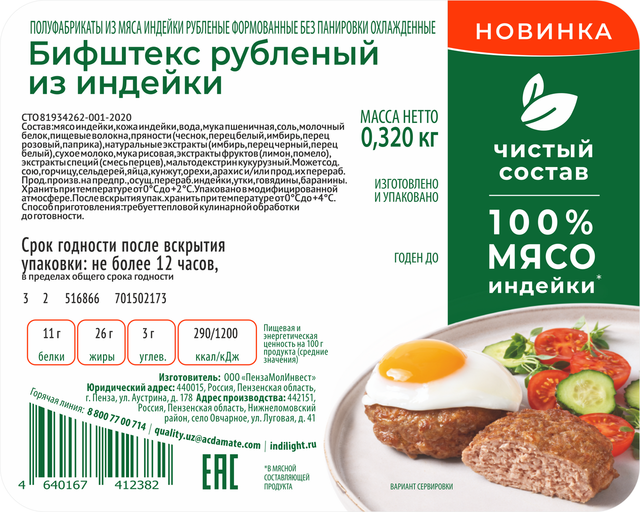 Бифштекс рубленый из индейки Индилайт охлажденный, 320г