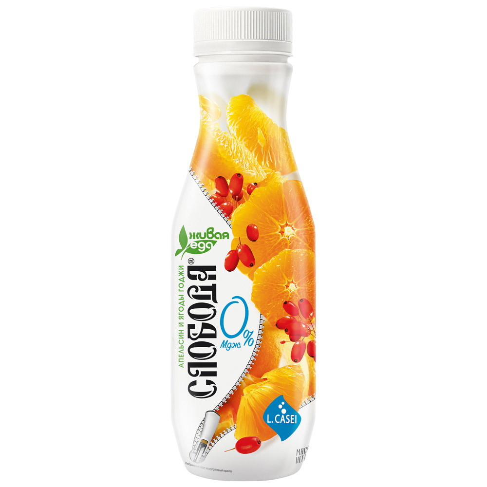 Биойогурт питьевой Слобода 0% с апельсином и ягодами годжи, 260 г