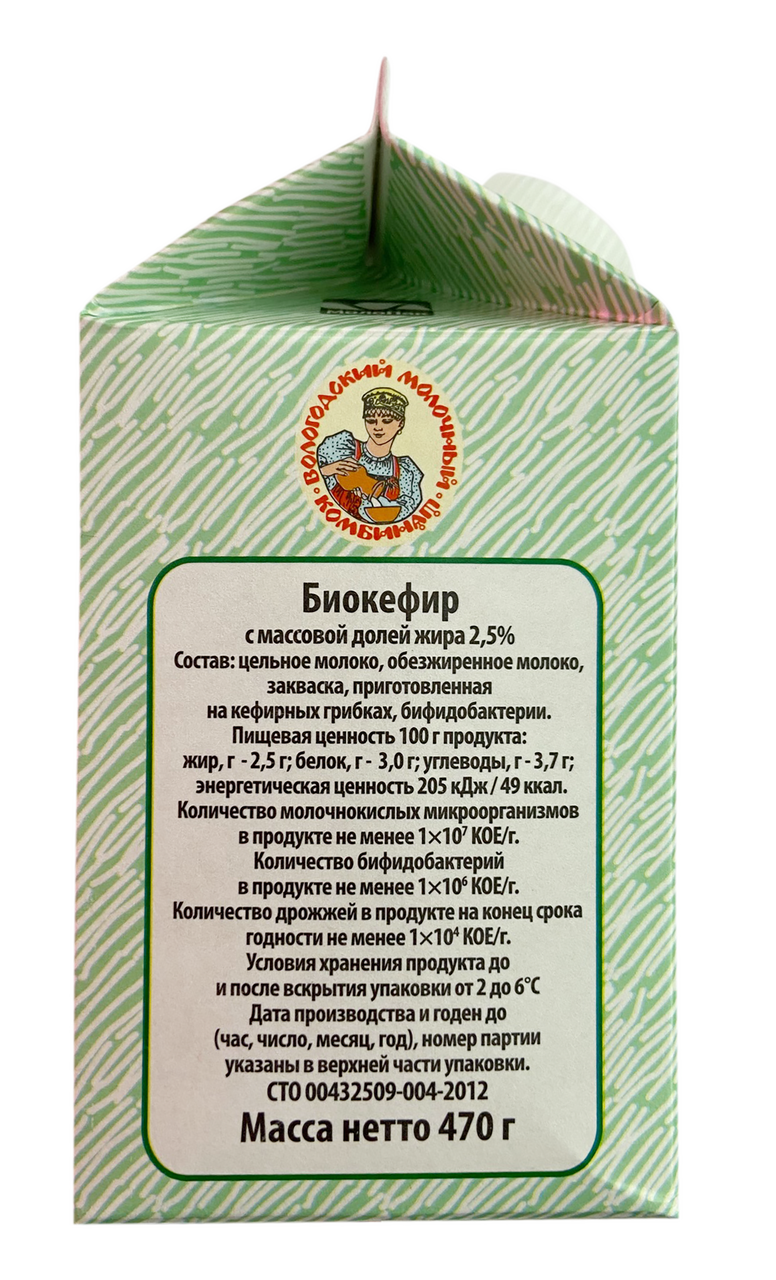 Обладает умеренной кислотностью и приятной консистенцией. Благодаря натуральному составу он быстро усваивается, дарит ощущение лёгкости. Напиток хорош как в чистом виде, так и в сочетании с наполнителем из свежих ягод и фруктов или сладкого джема. Он подходит для приготовления пышных оладий. Полезный напиток с натуральным составом. Благодаря бифидобактериям он помогает процессу пищеварения. Хорошо усваивается, не вызывает тяжести. Продукт обладает умеренно кислым вкусом и однородной консистенцией. Его можно пить просто так, добавить хлопья, ягоды или мюсли. Биокефир поможет утолить легкий голод, поэтому подойдет в качестве быстрого перекуса.