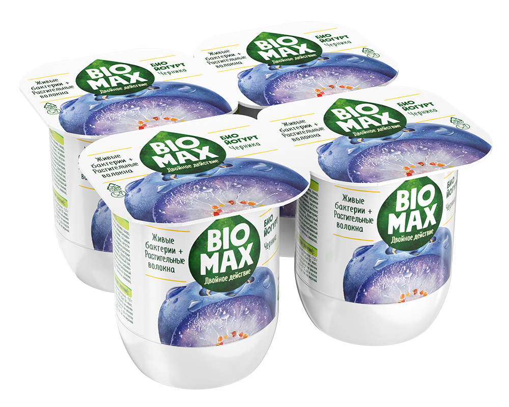 Биойогурт Bio-Max с черникой, обогащенный бифидобактериями и пребиотиком 2.2%, 125 г