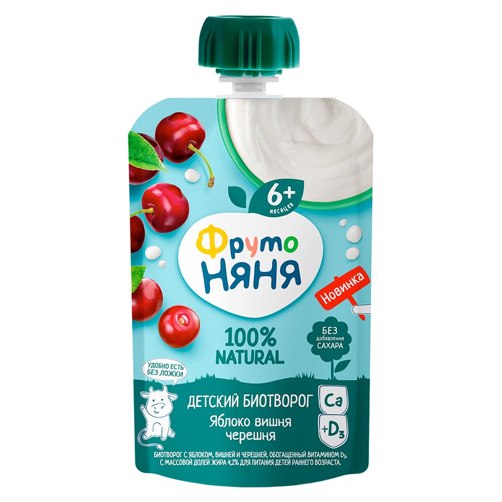Биотворог детский ФрутоНяня Яблоко, вишня и черешня 4.2% с 6 месяцев, 90г