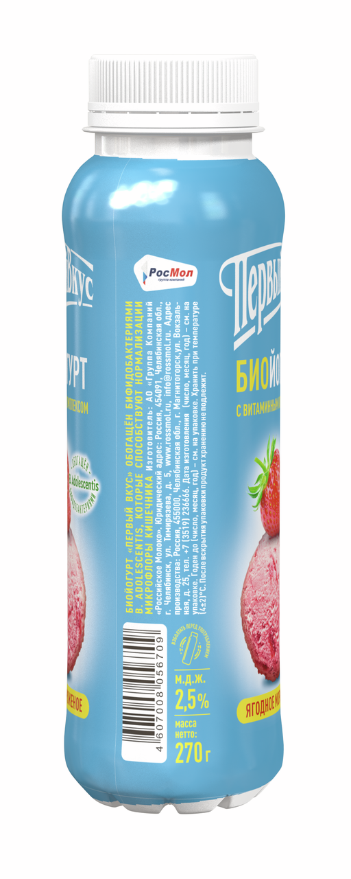 Биойогурт питьевой Первый вкус ягодное мороженое 2.5%, 270г