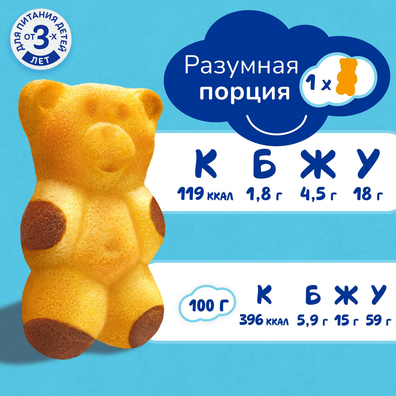 Бисквитное пирожное Барни с шоколадной начинкой - специально разработанное для детей кондитерское изделие в виде медвежонка, производится на основе натуральных ингредиентов: злаков и молочных продуктов. Обогащено кальцием, необходимым для здорового роста и развития детей, не содержит красителей и консервантов. Рекомендовано для детей дошкольного возраста от 3х лет. Медвежонок Барни - вкусный, полезный и питательный перекус, прекрасная альтернатива печенью, кексам или другой сладкой выпечке, отлично сочетается с соком, молоком, кефиром, йогуртом, чаем или какао, его удобно брать с собой в дорогу, давать ребенку в школу или на прогулку. Это отличный вариант сладкого угощения на детский праздник в детский сад, школу, на День рождения. В коробке пять пирожных в индивидуальных упаковках.