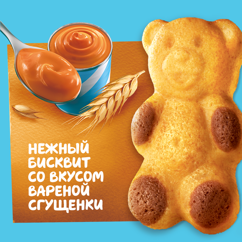 Пирожное бисквитное Медвежонок Барни с начинкой со вкусом вареного сгущенного молока, 150г x 20 шт