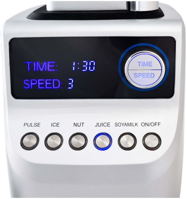 Блендер, электронное управление с ЖК-дисплеем, 10 скоростей (макс. 30000 об/мин), 5 доп.режимов (пульс, лед, орехи, сок, соевое молоко), стакан из тритана емкостью 2 л, материал корпуса - алюминий Стационарный блендер Gemlux GL-PB-999P относится к серии Power Blender (PB). Его основные отличия:— мощный высокоскоростной двигатель (1500 Вт, до 30000 оборотов в минуту),— полностью металлическая трансмиссия,— прочный шестилопастной нож из нержавеющей стали.Блендер Gemlux GL-PB-999P укомплектован стаканом емкостью 2 л с крышкой, мерным колпачком и толкателем. Толкатель – это удобное приспособление, которое вставляется в отверстие для мерного колпачка и позволяет быстро готовить густые пюре, коктейли, ореховую пасту и т.п. без необходимости постоянно отключать устройство, чтобы встряхнуть и перемешать продукт. Стакан блендера GL-PB-999P изготовлен из тритана – это экологичный и безопасный современный материал, который устойчив к механическим повреждениям, не впитывает запахи, не окрашивается и не теряет прозрачности даже при длительной эксплуатации. Стакан имеет квадратное сечение, ребра и расширяющуюся кверху форму, что вкупе с объемным 6-лопастным ножом обеспечивает стабильный высокоскоростной поток продукта без воздушных ��устот, эффективное измельчение, перемешивание и однородную кремообразную консистенцию смеси.Блендер Gemlux GL-PB-999P имеет электронное управление с ЖК-дисплеем, на который выводятся время работы и скорость вращения ножа. Предусмотрено 10 скоростей: 9 из них обозначаются арабскими цифрами от 1 до 9, а 10-я – буквой H (high, высокий). Переключение скоростей осуществляется вращением ручки. Время работы задается в диапазоне от 0 до 10 минут с шагом 10 секунд. Помимо этого, вы можете выбрать один из пяти предустановленных режимов работы:— PULSE – кратковременное включение на максимальной скорости. Используется, например, для быстрой очистки стакана;— ICE – колка льда, длительность цикла 30 секунд;— NUT – дробление орехов, длительность цикла 1 минута;— JUICE – приготовление соков с мякотью, длительность цикла 1 минута 30 секунд;— SOYA MILK – измельчение соевых бобов и приготовление соевого молока с подогревом, длительность цикла 6 минут.Блендер Gemlux GL-PB-999P оснащен массивным моторным блоком в прочном алюминиевом корпусе, который обеспечивает устойчивость даже при максимальной нагрузке.Объем стакана 2 лМатериал стакана тританМощность б1,5 кВтТип управления электронное с ЖК-дисплеемКоличество скоростей двигателя плавная регулировка скорости + 5 доп.режимовМатериал корпуса алюминийГабаритные размеры 232х220х545 ммНапряжение 220/50/1Вес 5,3 кг